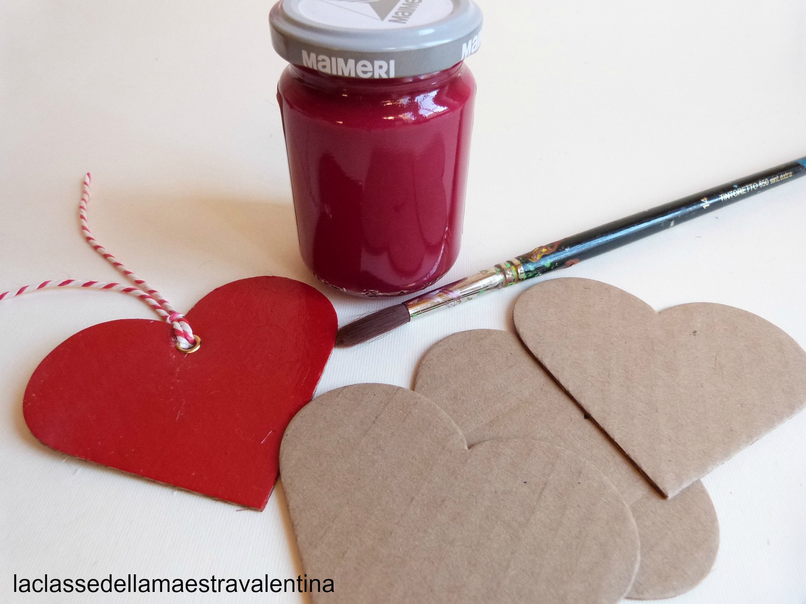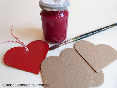 Tutto riciclo naturalmente... partendo da cuoricini di cartone (scatole da imballo) pitturati.