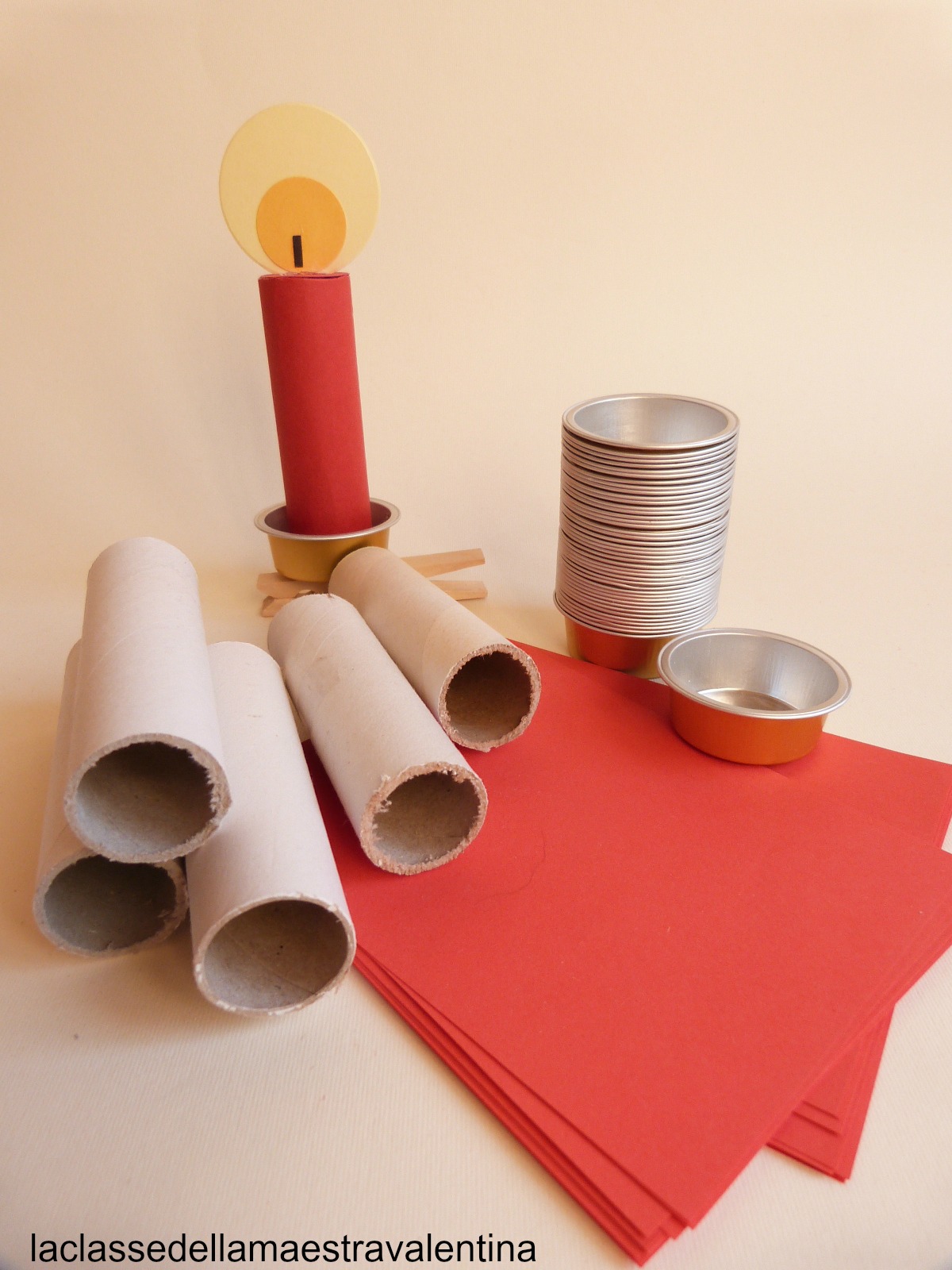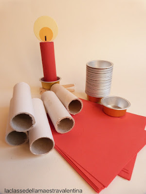 Oggi vi faccio vedere delle semplici candeline, realizzate con materiale da riciclo: tubolari di cartone e contenitori di marmellatine.