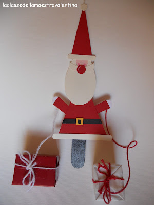 Questi simpatici babbi natale qualche anno fa li ho appesi al classico cordino che percorre sempre la mia classe.