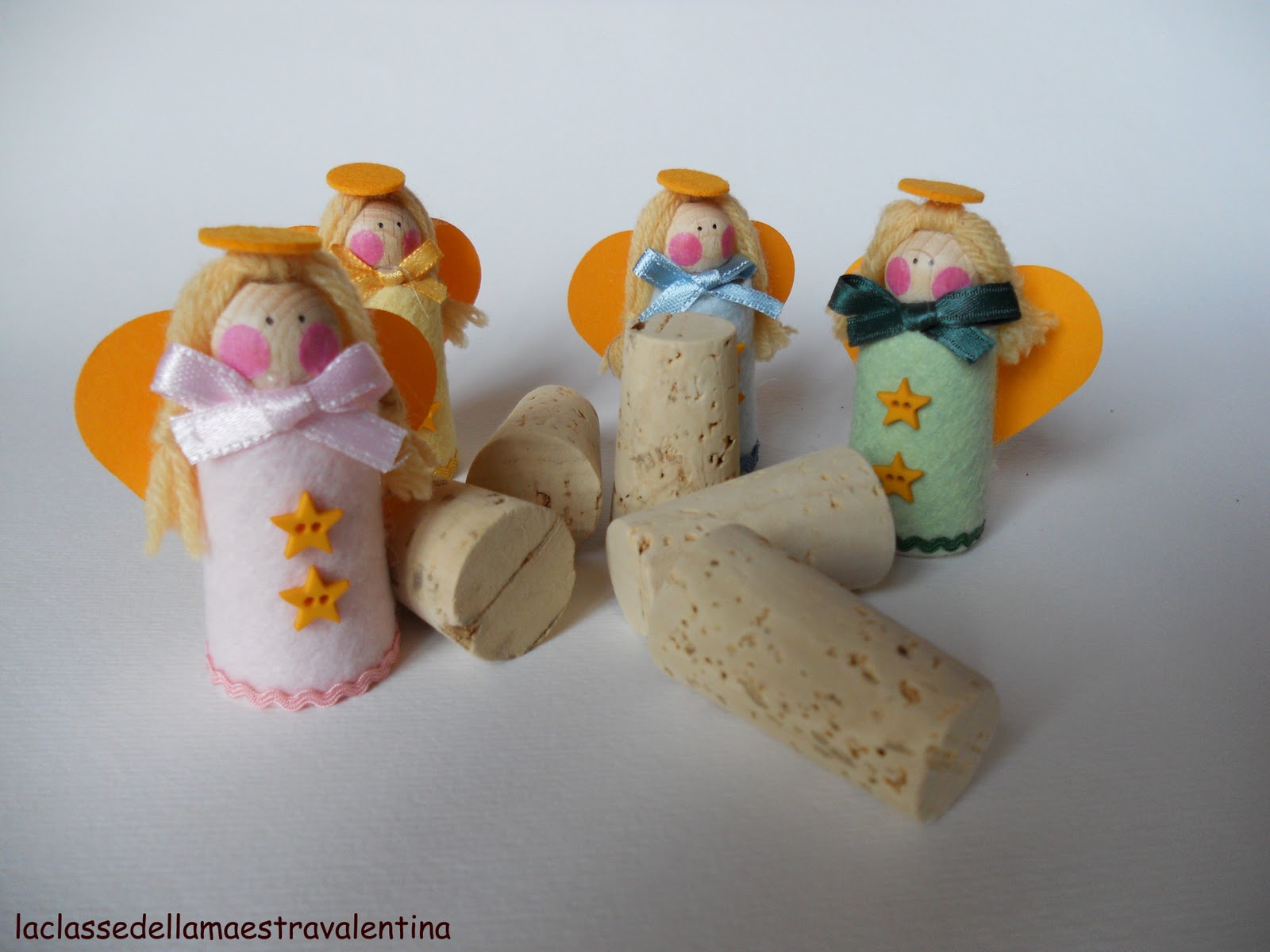 Mi sono divertita a fare i protagonisti… gli angioletti colorati (utilizzando tappi e pannolenci).
