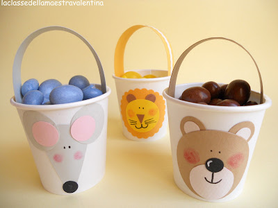 ...belli..l'idea è carina....ricordo che anni fa, direi almeno una decina feci una cosa simile per il compleanno di mia figlia grande...allora però presi semplici bicchierini di carta colorata, feci il manico del cestello e misi dentro caramelline da portare alla scuola dell'infanzia al posto della classica tortina.