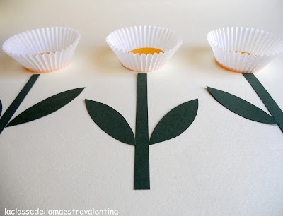 Non avevo mai pensato all'utilizzo dei pirottini (li hai presi dalla cucina della sorellina?) che rendono decisamente molto bene l'idea di un fiore... grazie, copierò con i nipotini.