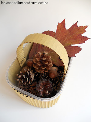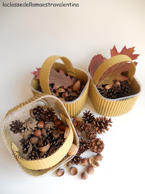 In autunno le mie bimbe tornano a casa dalla passeggiata con le tasche piene di foglie, pigne e pinoli. Quest'anno salveremo le tasche...grazie a questi cestini porta doni. Bella idea!!