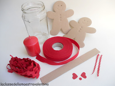 Vasetti di vetro (marmellata), cartone, passamaneria, della fettuccia e, con un costo minimo, ecco delle allegre lanternine.