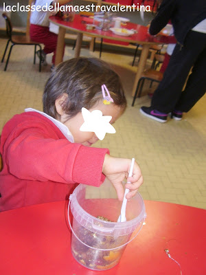 Ho consegnato ad ogni bimbo un secchiellino e un cucchiaio, dove hanno messo tutto quello che volevano... un po' come fare una pozione magica.