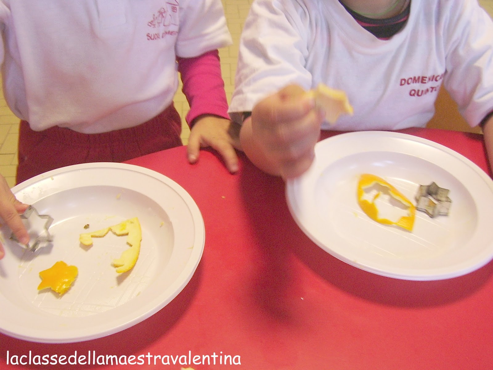 Ho iniziato con una bella spremuta di arance e, con la buccia, abbiamo fatto delle stelline (con taglia biscotto) e dei bastoncini.