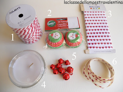 Ho messo dentro a dei sacchetti trasparenti di cellophane il pot pourri e li ho ricoperti con la striscia rossa.