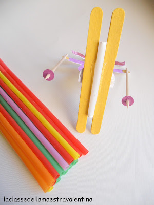 Gli sciatori scivoleranno giù grazie alla pendenza della pista e dal filo che viene inserito nella cannuccia.