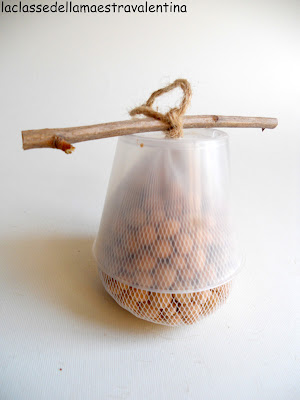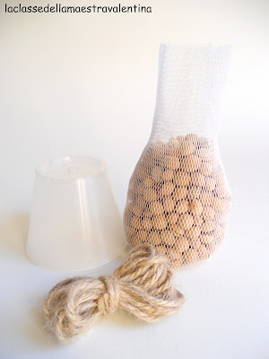 Dentro alla retina abbiamo messo pane secco e semini di girasole.