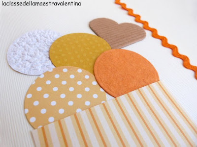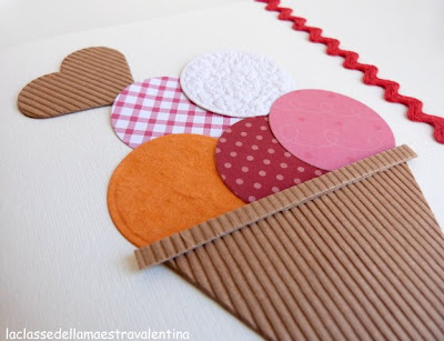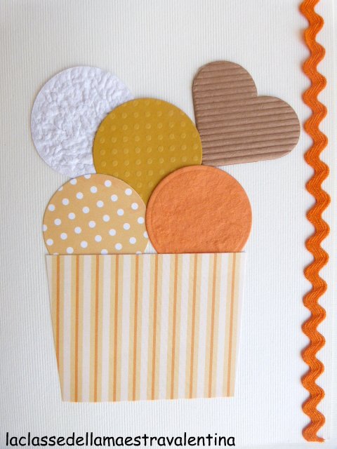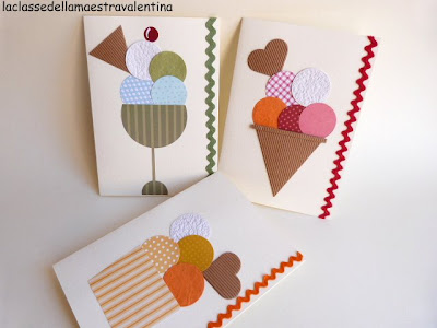 Trovo questi biglietti tanto tanto allegri, e io mi sono veramente divertita a incollare palline di gelato (carta scrapbooking).
