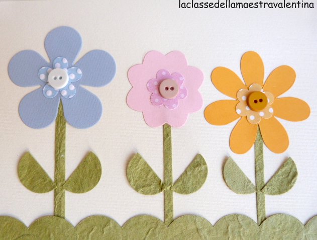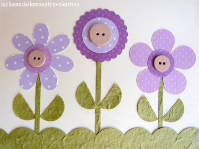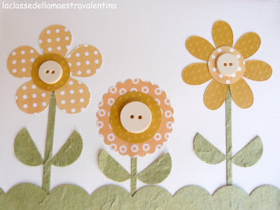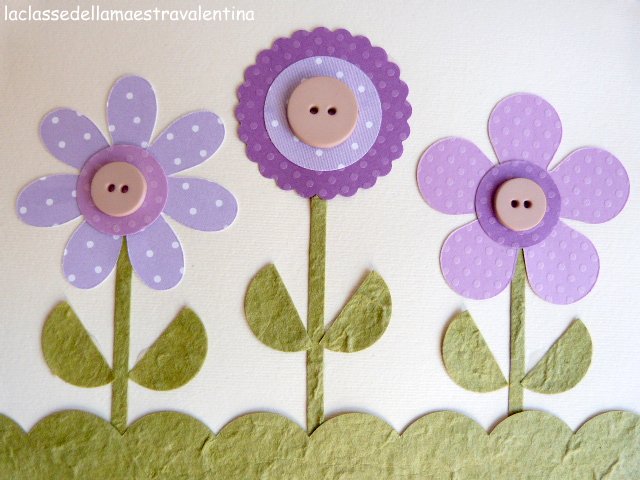 Per i fiori ho usato la carta per scrapbooking e bottoni, tutto incollato con il vinavil.