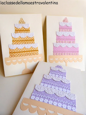 Il cake design ormai ha preso campo, e per questo motivo ho voluto provare anch'io... con il cartoncino, ho creato 3 torte a più piani, con fiori in rilievo. Sicuramente per farla vera occorrono giorni e giorni di lavorazione, ma con la carta è tutta un'altra storia.