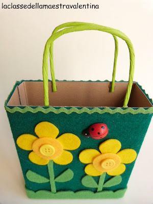 Una scatoletta per alimenti (io ho usato quella del sale per lavastoviglie), pannolenci, fustellate qua e la... e la borsetta è fatta!