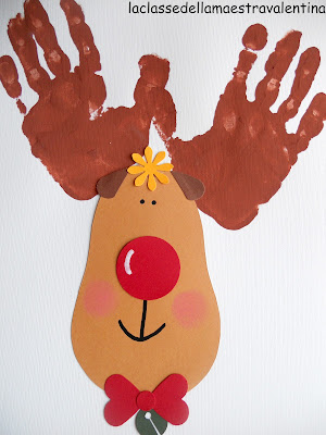 Care creative, sicuramente avrete già visto su parecchi blog la renna con le impronte delle mani...quindi nulla di nuovo, ma volevo comunque farvi vedere la mia personale interpretazione.