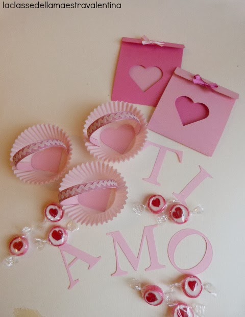Sempre per San Valentino... pirottini porta dolcetti e bustine porta letterina d'amore o porta caramelle... ma avete visto che carine le caramelle con il cuoricino? Anche questi dolcetti li ho presi da TIGER.
