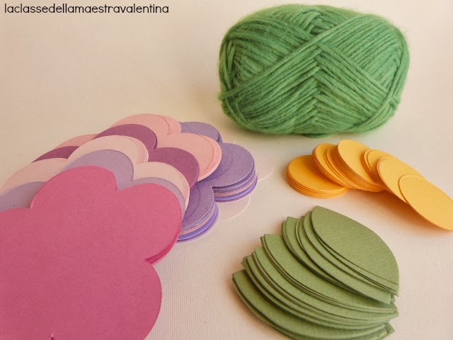 Quest'anno ho pensato a una "ghirlanda" piena di fiori nella tonalità del rosa, lilla e viola.
