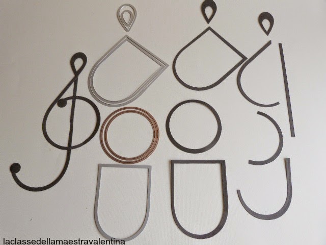 Giusto qualche giorno fa una lettrice mi chiedeva se esistono delle fustelle di note e chiave di violino... io sinceramente non le ho mai viste, ma poco importa... con un po' di fantasia si possono realizzare così.