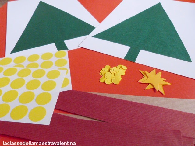 Dopo aver preparato un albero (carta da pacchi verde) incollato su un cartoncino rigido, ho consegnato ai bambini degli avanzi di carta da pacco rossa.