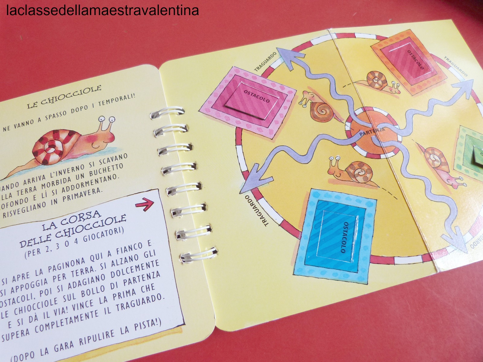 lo spunto è arrivato da questo libretto...modificando un pochino ho realizzato con 2 scatole da cravatte 4 corsie dove posizionare le lumachine.