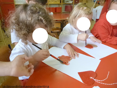 Tutto riciclo naturalmente... partendo da cuoricini di cartone (scatole da imballo) pitturati.
