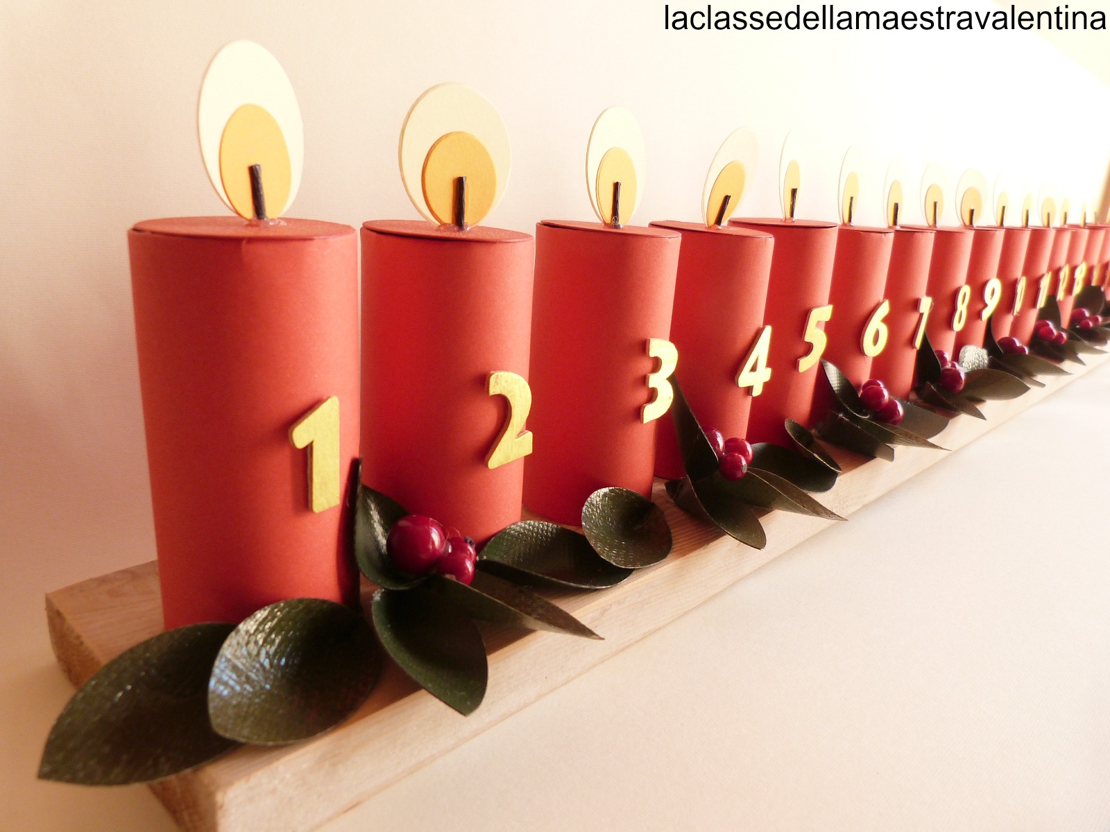RispondiEliminaCarissima Valentina, questa è un' ottima idea per l' avvento ! Il tuo calendario è strepitoso !!! Oltre alla maestria della tua manualità (ormai ben nota)in questo modo si partecipa alla trepida attesa del magico Natale in modo sano, ricicloso e non consumistico (senza il solito cioccolatino o caramella.....che oltre ad ingrassare, viziare e arricchire i dentisti, può essere una valida alternativa in un asilo, quando ci si deve dividere tra più bambini).....così si accontenta tutti !!