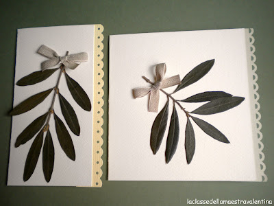 Per i biglietti con l’ulivo vi posso dire che ogni anno raccolgo dei piccoli rametti, li sistemo con cura in mezzo alle pagine di un libro e così l’anno successivo mi possono sicuramente tornare utili per fare qualche lavoro.