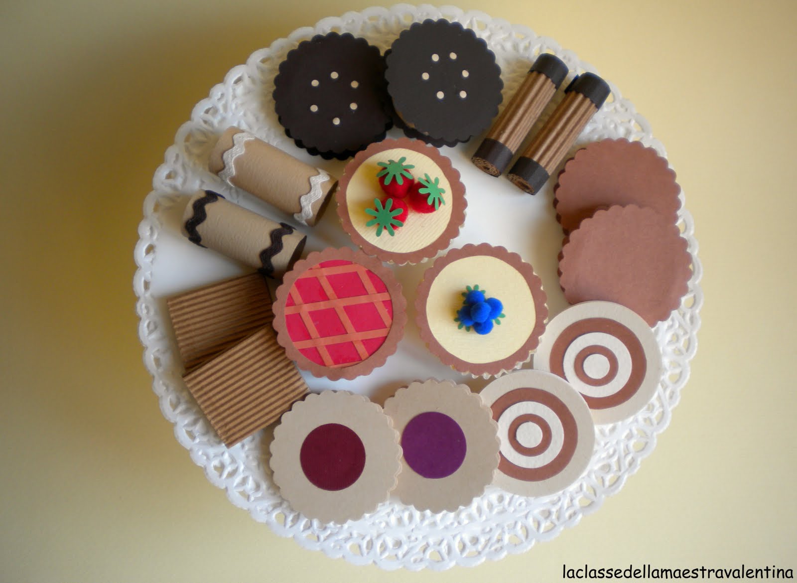 Eh si, ci ho preso gusto, è veramente divertente fare pasticcini e biscottini di cartone. Naturalmente non potevano mancare la tazza e la teiera, tutto interamente fatto con cartoncino, tubolari e tanta colla.