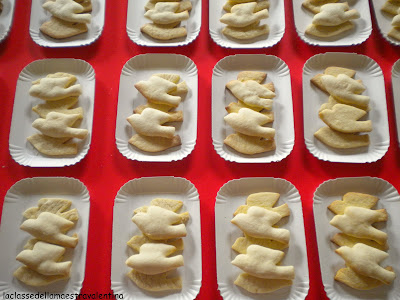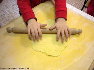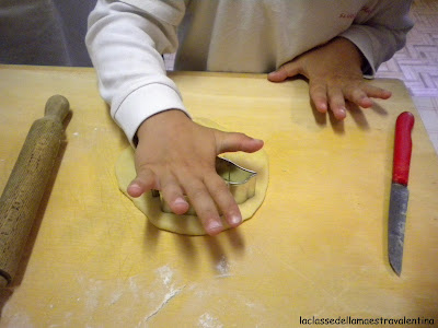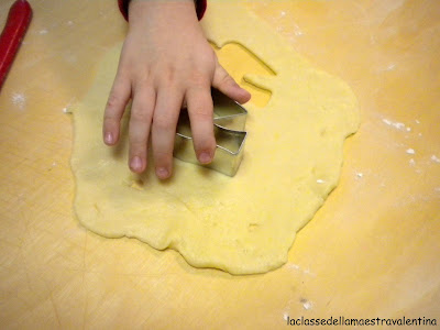 Oggi è venuta la nonna di Mattia che ha fatto fare ai bambini dei biscottini a forma di colomba.