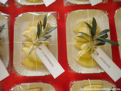 Dopo averli cotti io li ho confezionati mettendoli dentro a un vassoietto, fasciato con carta cellophane e legato con un cordino e un rametto di ulivo.