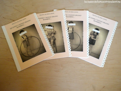 Valentina, sono sempre più sbigottita! Il filo conduttore della recita è molto bello e l'idea di far vestire i bambini come un tempo e di antichizzare le foto mi piace tantissimo! Sei proprio una grande maestra: i libretti per seguire la recita, i regali per i nonni, il quaderno per i genitori con tutte le attività svolte dal proprio bambino durante l'anno... La tua non è la solita recita di fine anno, è la conclusione di un anno fatto col cuore. Fortunatissimi bambini!!