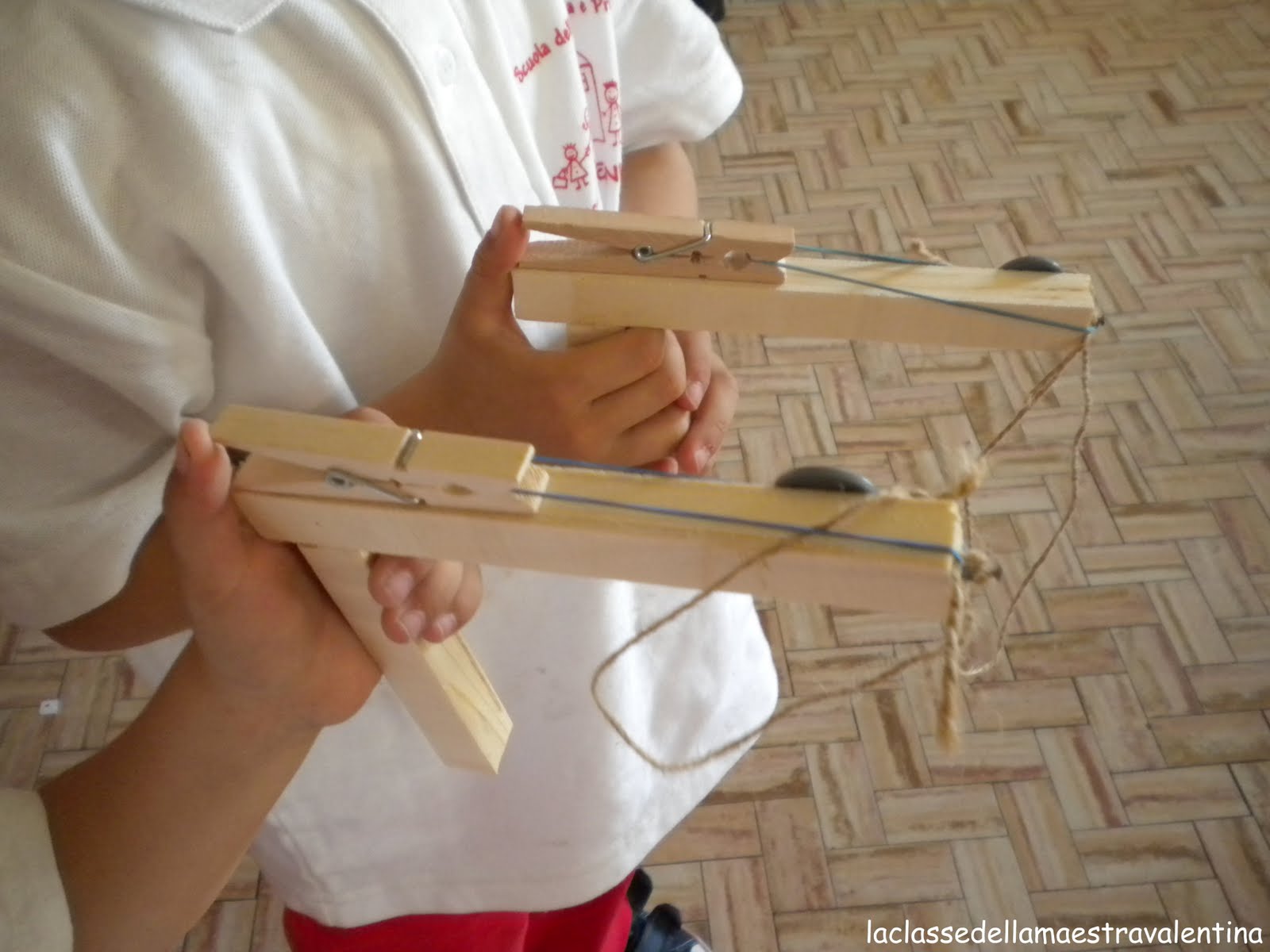 Bastano due legnetti, una molletta, un elastico, due chiodi e dei bottoni e vi assicuro che i vostri bambini si divertiranno per ore.
