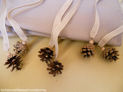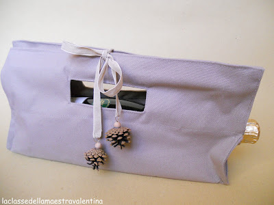 4. Amo i tuoi cuori! Bella anche la borsa porta bottiglia decorata con le pigne!