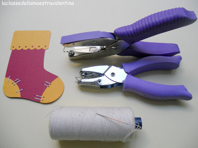 Sulla punta e sul tallone ho forato con due particolari fustelle ( dubito che si chiamino così) ed ho passato del filo doppio dentro ai piccoli fori.