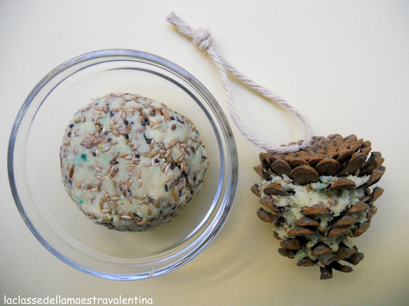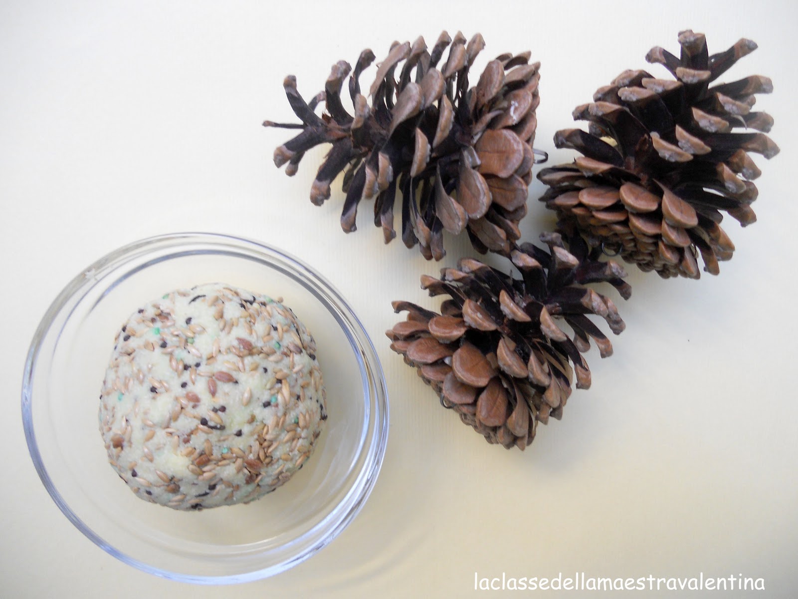 Mischiate i semini con acqua e semolino, quando “l’impasto” risulterà compatto, inserite delle piccole porzioni tra le fessure della pigna.