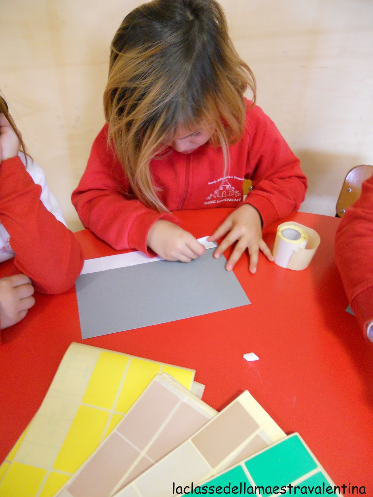 Come promesso, ecco qui i miei bambini che si divertono ad appiccicare etichette, realizzando un simpatico paesaggio innevato.