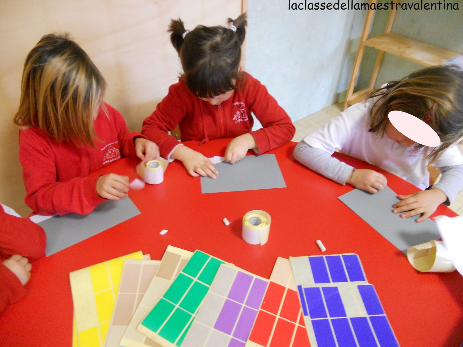 Come promesso, ecco qui i miei bambini che si divertono ad appiccicare etichette, realizzando un simpatico paesaggio innevato.