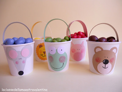 ...belli..l'idea è carina....ricordo che anni fa, direi almeno una decina feci una cosa simile per il compleanno di mia figlia grande...allora però presi semplici bicchierini di carta colorata, feci il manico del cestello e misi dentro caramelline da portare alla scuola dell'infanzia al posto della classica tortina.