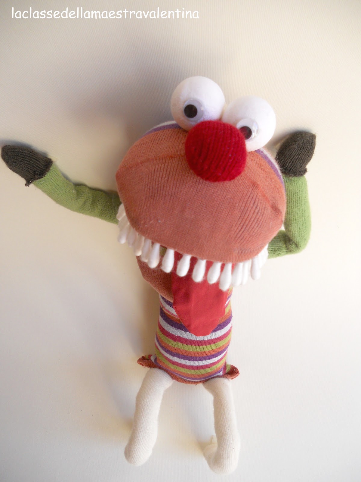 (Questo mostro buono, è stato realizzato con una calza, ovatta e tantissimi cotonfioc).