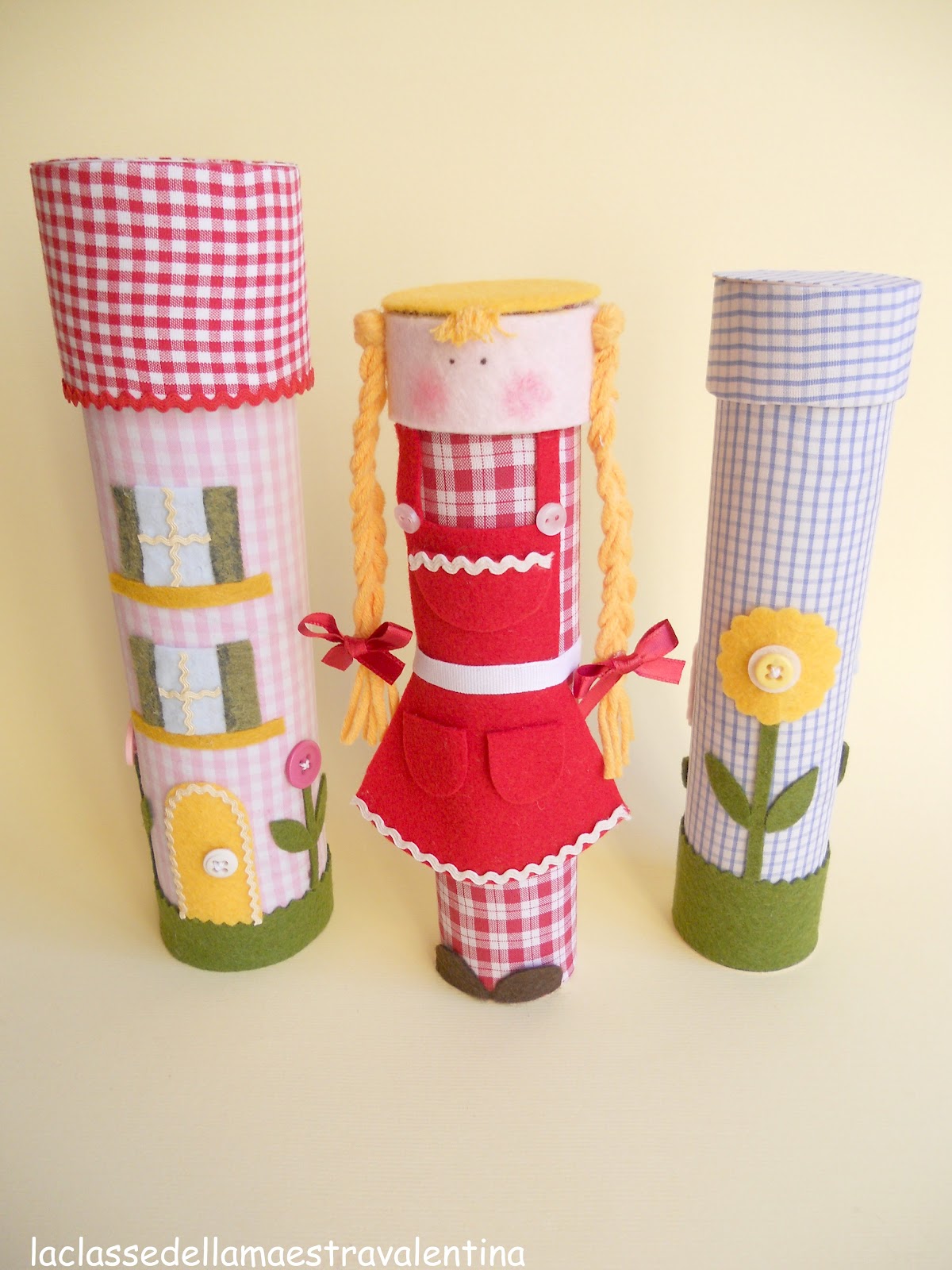Possedendo scatole e scatole di rotoli, rotolini, rotoloni… ho pensato di utilizzarne un po’, creando questi porta oggetti, rifasciati con stoffa e pannolenci.