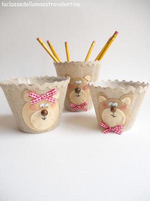 Avendo la classe degli orsetti, come decorazione ho voluto rappresentare proprio loro, tre orsetti di dimensione diversa, a seconda della grandezza delle vaschette.