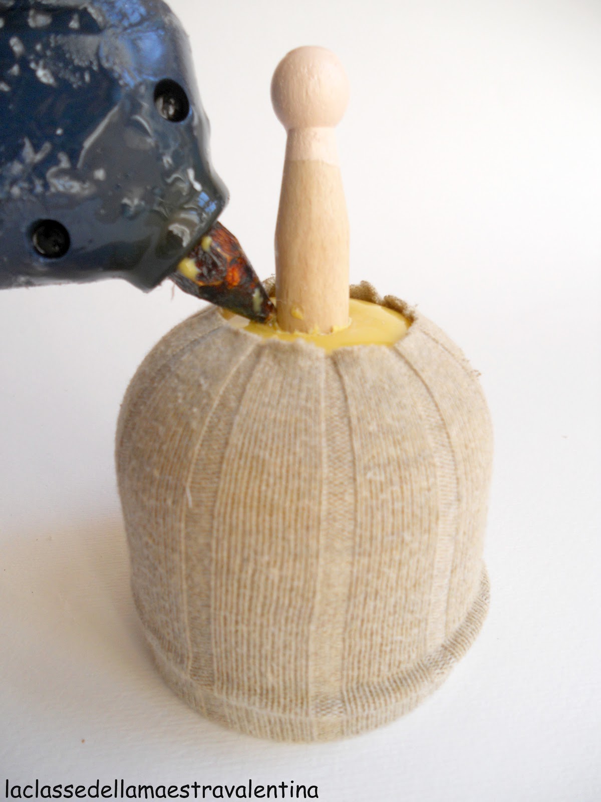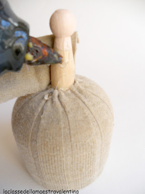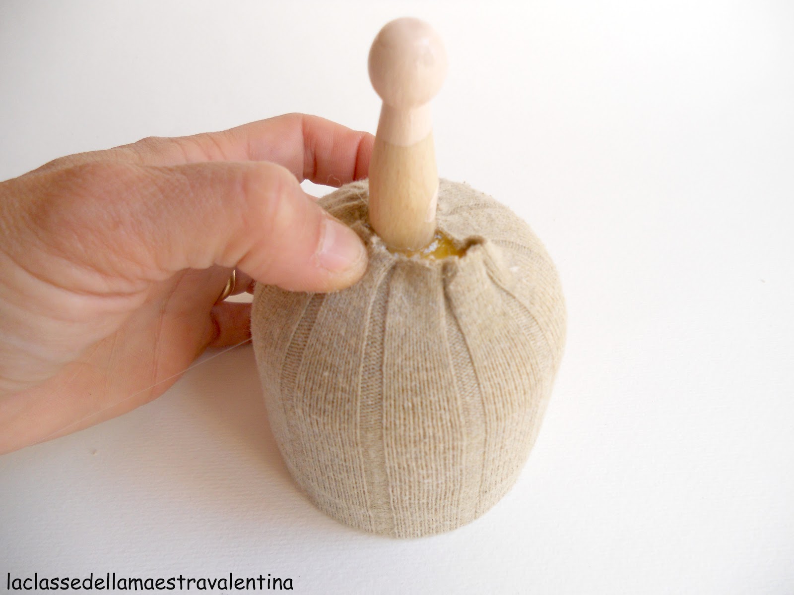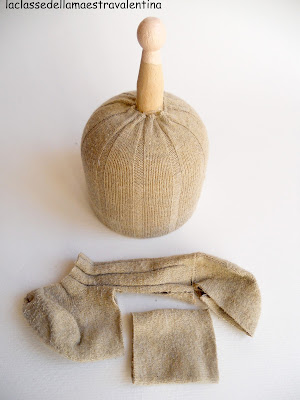 MA COME HO SUGGERITO A QUALCUNO...SE PRENDETE UN PEZZETTO DI LEGNO 9 cm. (TUBOLARE) ED INCOLLATE SOPRA UNA PERLINA DI LEGNO MEZZO cm....L'EFFETTO E' UGUALE, VISTO CHE LA TESTA VIENE PITTURATA E IL MEZZO BUSTO RICOPERTO DAL PEZZETTO DI CALZA.