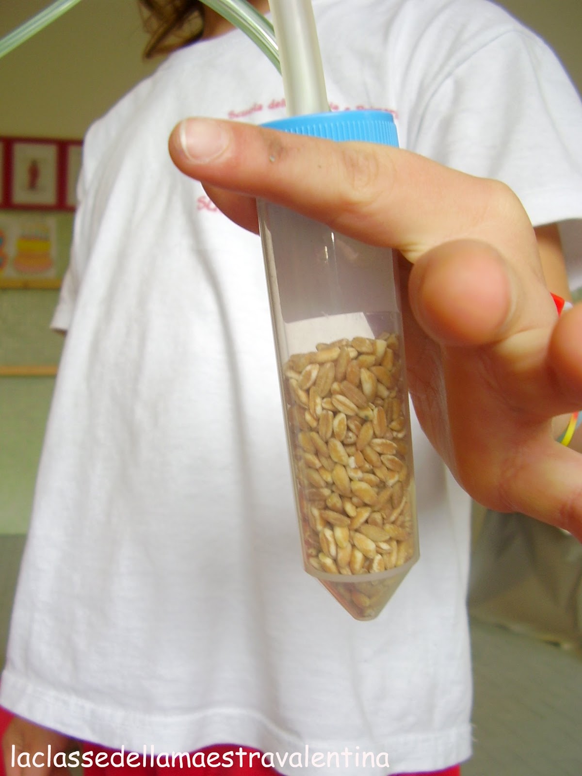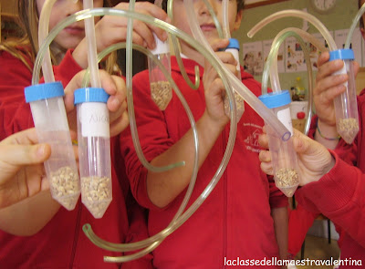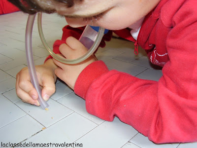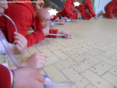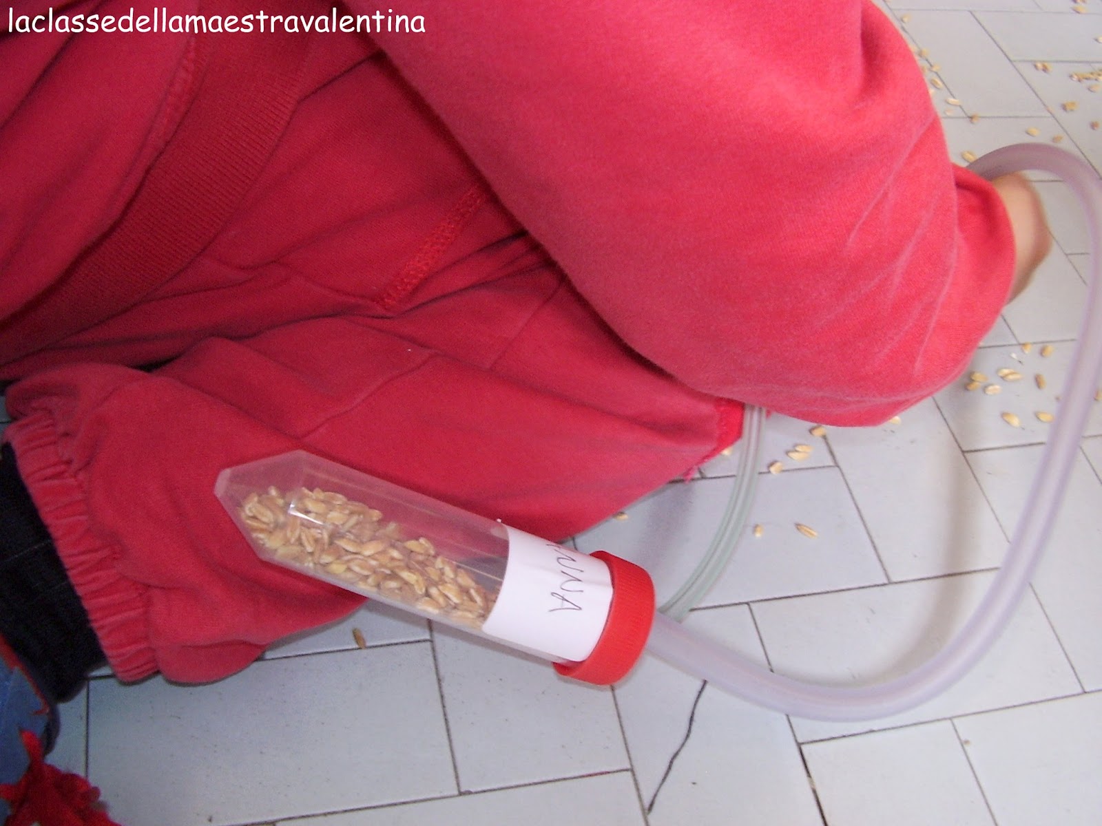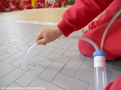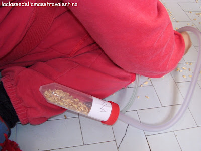 Ho sparpagliato per tutta la classe mezzo chilo di grano e, tramite questo aspiratore, i bambini dovevano aspirare in 20 minuti più chicchi possibili.