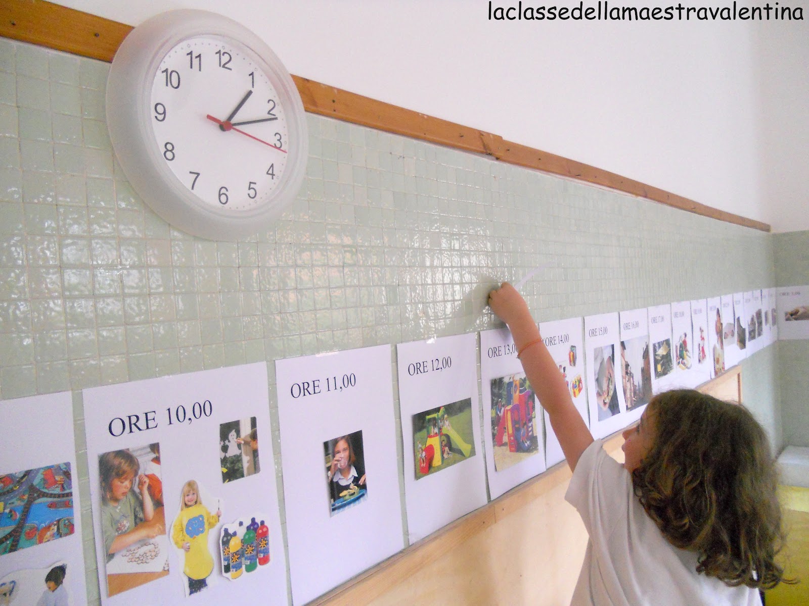 Ogni mezzora e ora il bambino sposta la lancetta.