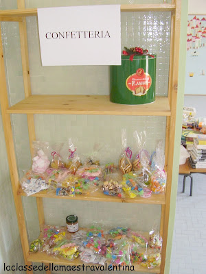 I miei bambini per un giorno si sono divertiti a fare i negozianti (per integrare l'argomento città)... nel "centro commerciale gli orsetti".