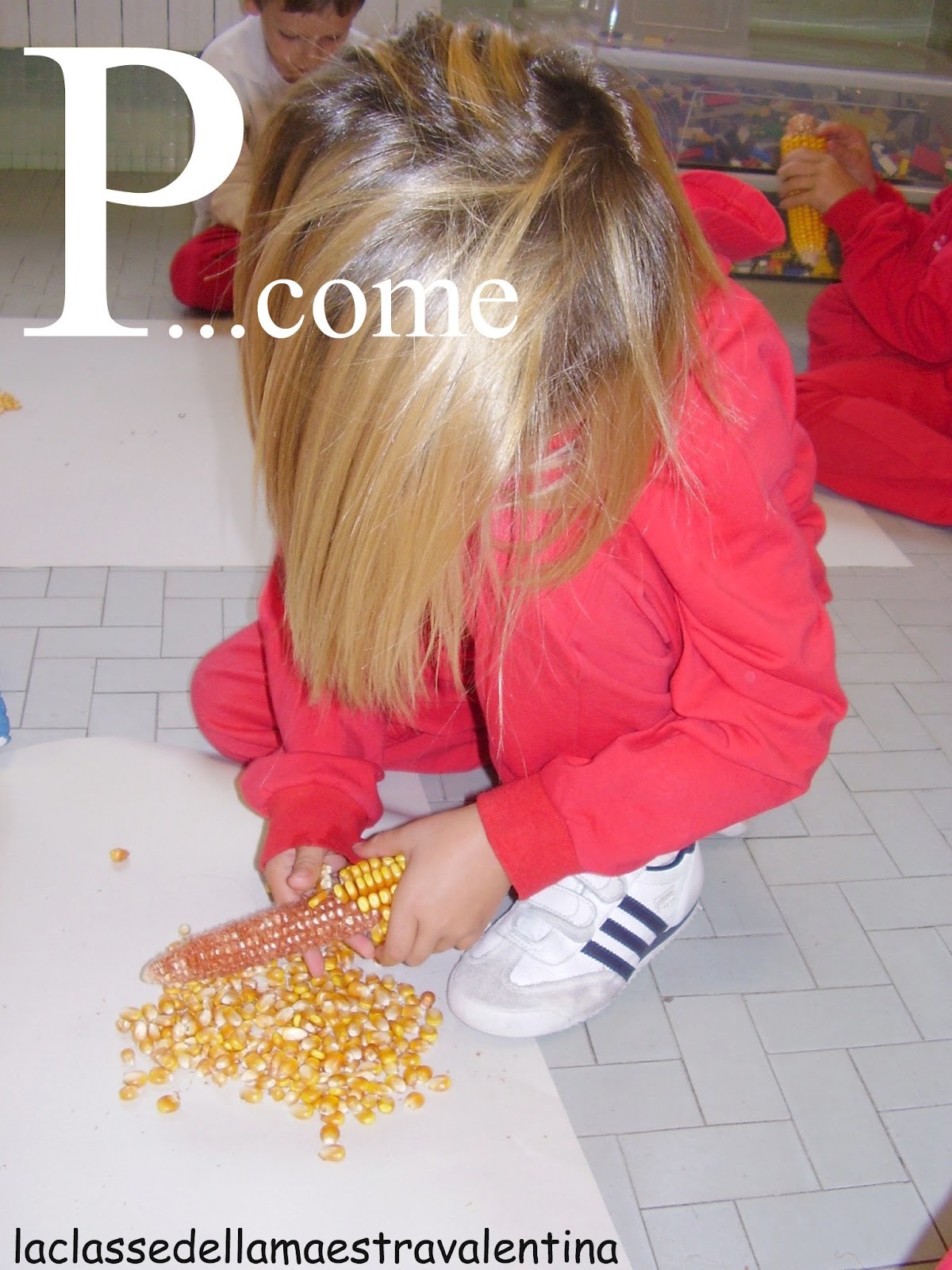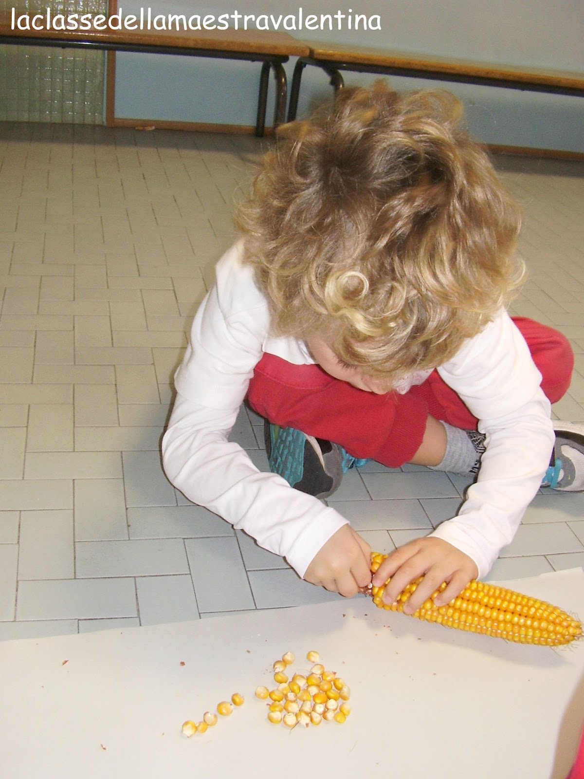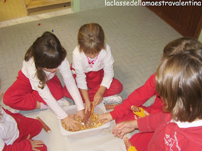 Anche noi quest'anno abbiamo manipolato con vari semi tra cui anche il mais...ed i bimbi si divertono sempre tanto.