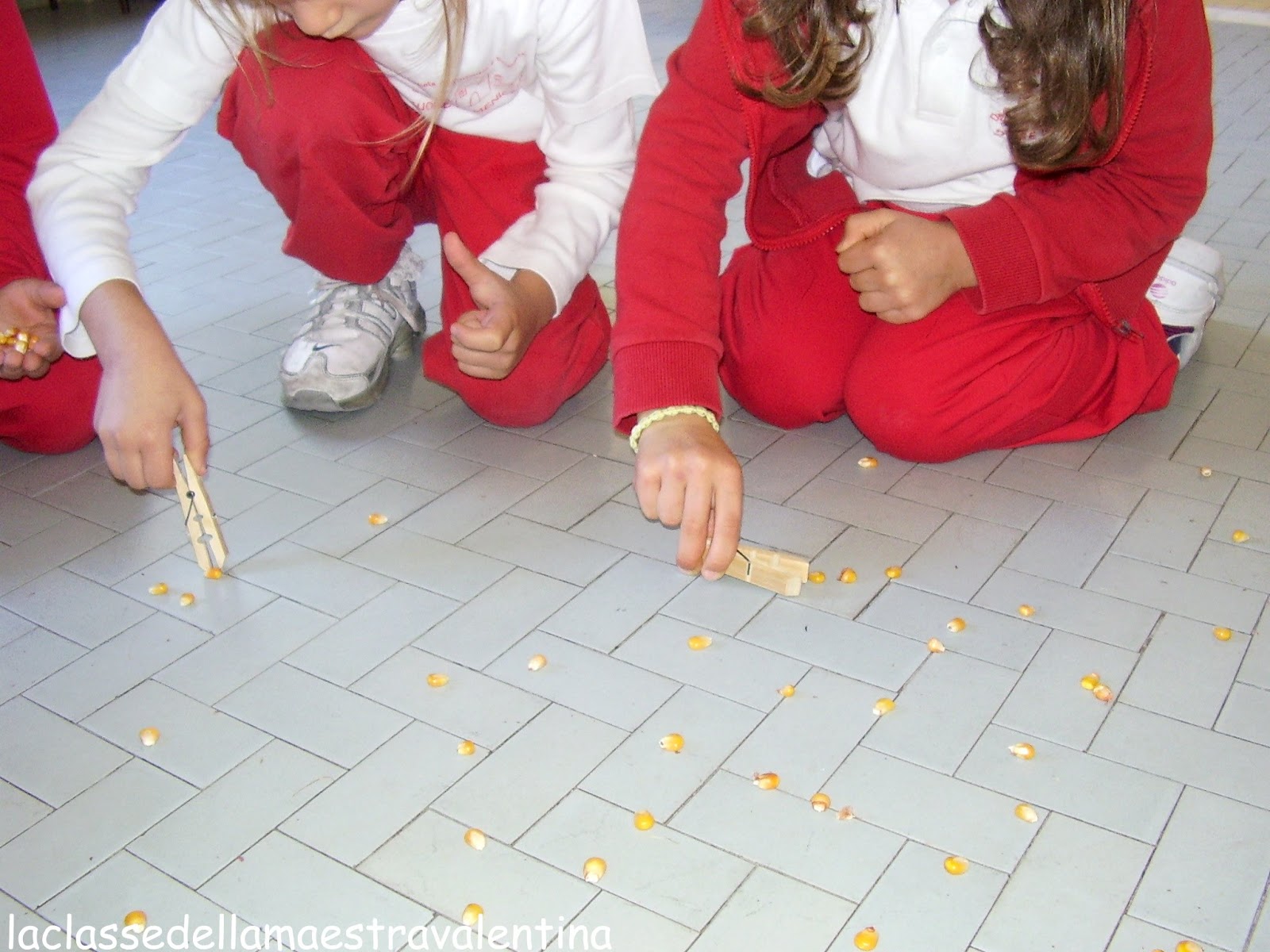 ....Che bello il gioco del prendere i chicchi di mais con le mollettine....è un'idea che proporrò il prossimo anno.