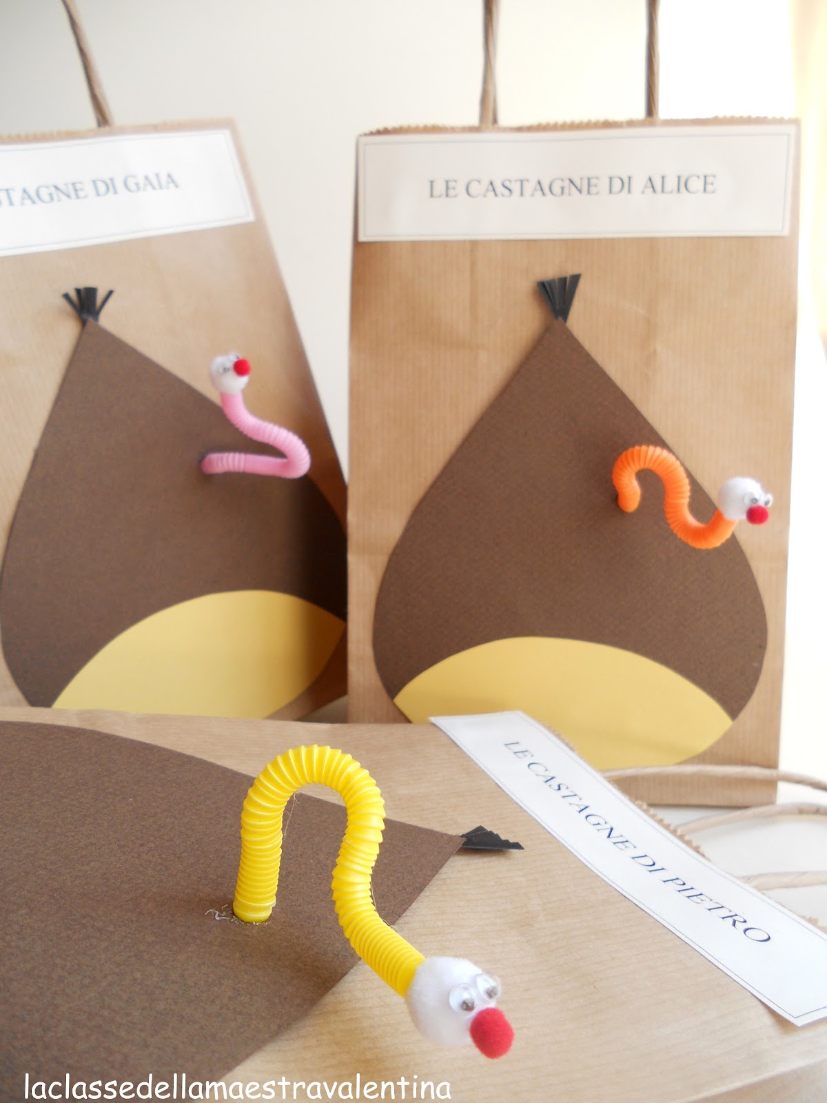 Le castagne le farò pitturare dai bimbi; queste che vedete, sono state realizzate con del cartoncino.