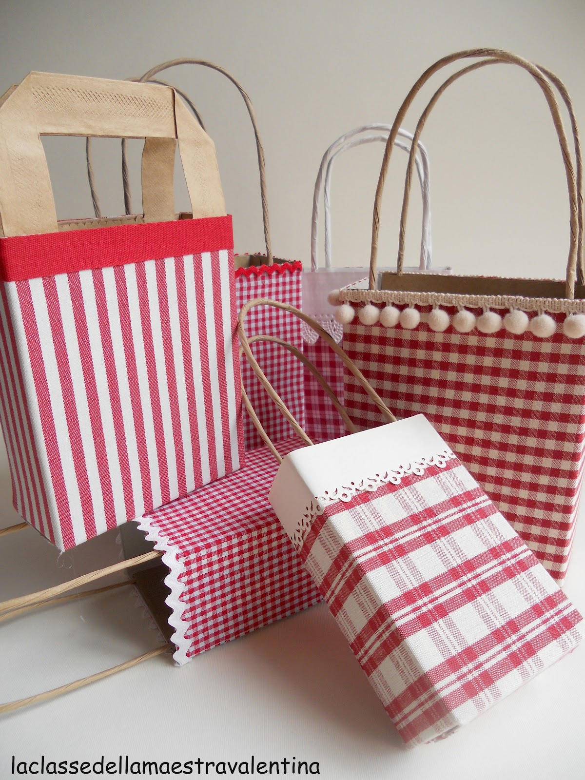 EliminaBellissime davvero! Natale scorso avevo fatto dei sacchetti di carta aprendo un normale sacchetto e utilizzandolo come modello da ricalcare su cartoncini di varie fantasie e decorati dalle bimbe....ma questa tua idea supera la mia di granlunga perchè c'è anche il riciclo incorporato!!! Lena