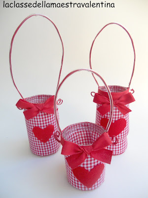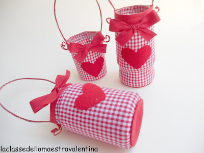 Per chi vuole creare delle lanternine veloci, veloci, basta del T.N.T (tessuto non tessuto) rosso, vasetti di vetro e trenetta bianca.