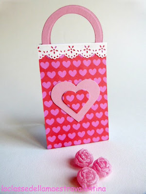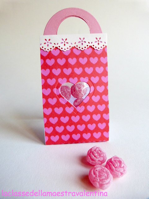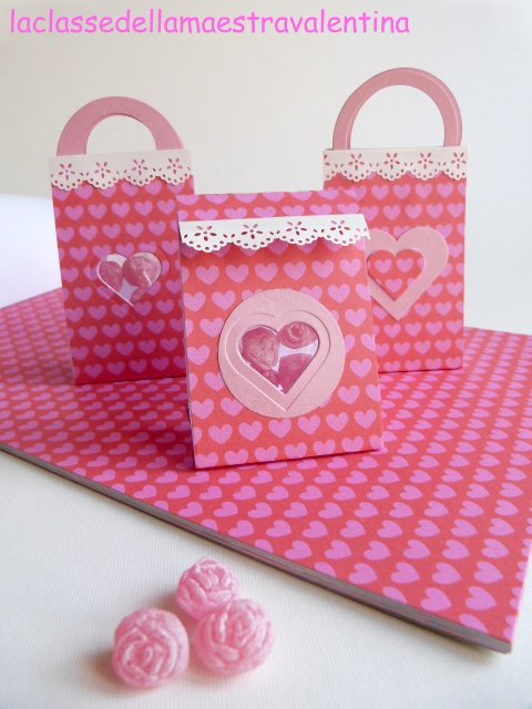 Oltre il bigliettino, anche qualche dolcetto è d'obbligo a S.Valentino... e quindi, ecco delle piccole confezioni piene di cuoricini, da riempire di caramelline o cioccolatini.